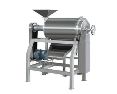 前一工序的物料進入頭料桶,主軸驅動葉輪高速旋轉,物料由葉輪驅動,篩子被摩擦擠壓,使物料的肉、汁、皮、汁通過篩上的小孔與果皮和種子分離,進入第二物料桶,皮和籽被推到軸端,通過排渣口排出。打漿后,可自動清洗。只要改變不同規(guī)格的篩分,調(diào)整葉輪與篩網(wǎng)之間的間隙,可以改變打漿效果。