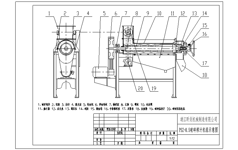 簡介—由前支座、進料斗、螺旋、過濾網、盛汁器、后支座、出渣槽等組成,螺旋主軸左端支撐于滾動軸承座內,右端支撐于手輪軸承座內,電機通過一對三角皮帶驅動螺旋進行工作。